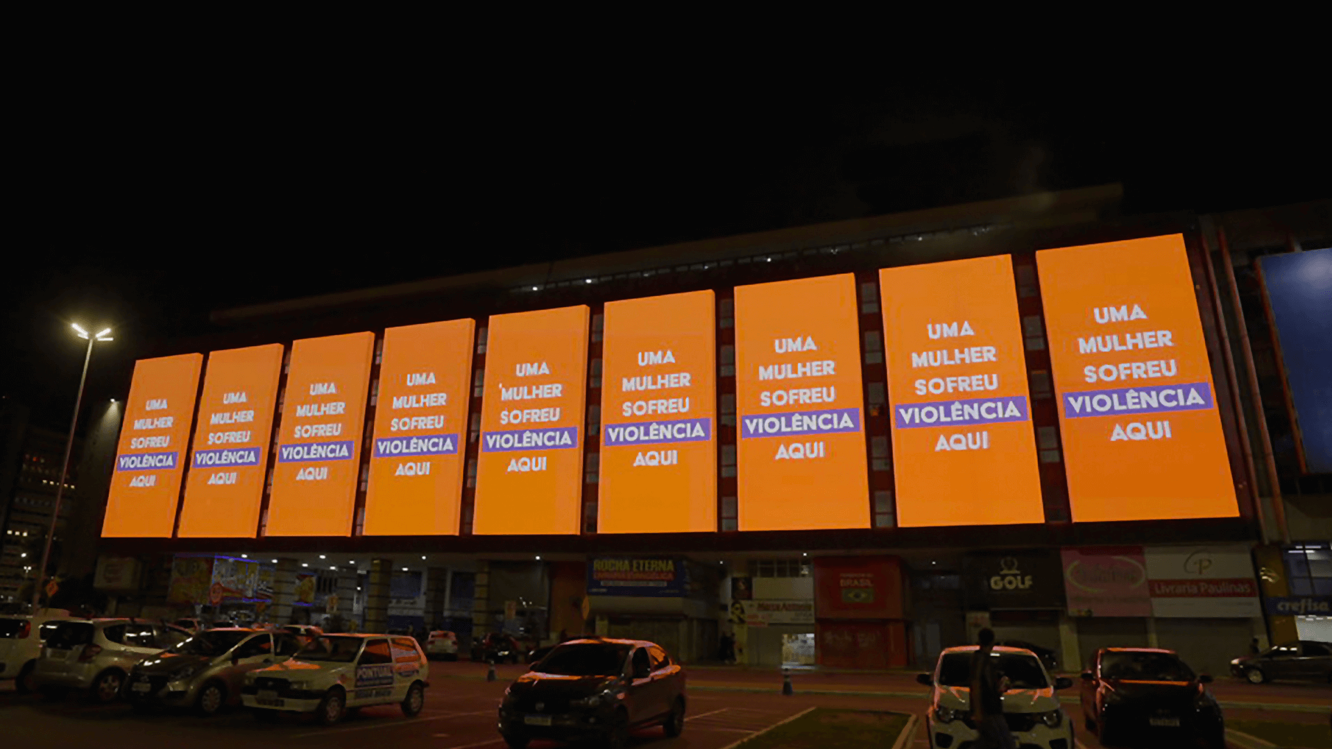 A ação, uma parceria com a ONU Mulheres e o Instituto Gloriaque alertou para a violência digital e encheu Brasília de DOOHs, que interromperam a programação por dez minutos, com a mensagem “Uma mulher sofreu violência aqui”, na mesma hora em que uma projeção foi exibida no Congresso.